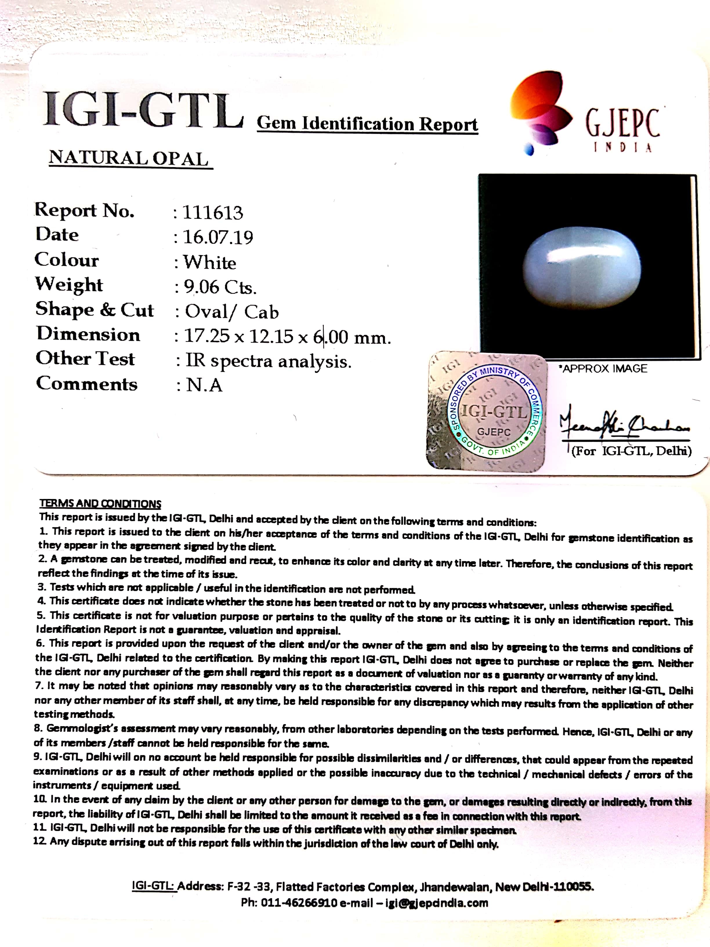 10.07 Ratti Natural Opal with Govt. Lab Certificate-(610)