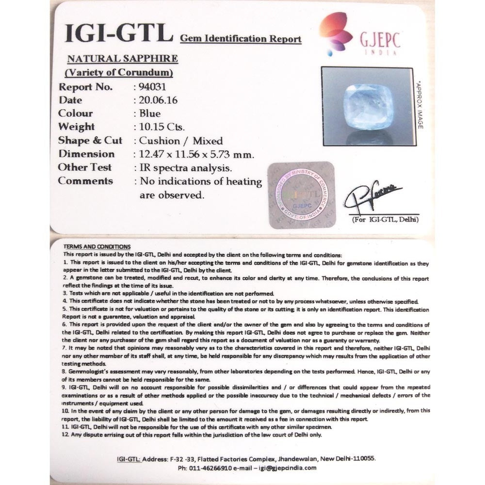 10.15/CT Natural Blue Sapphire with Govt Lab Certificate-BLUSA9U