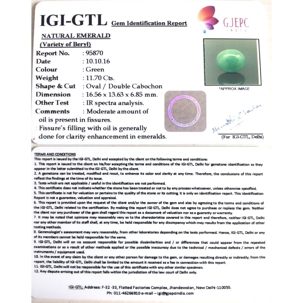 13.00 Ratti Natural Panna Stone with Govt. Lab Certificate (2331)