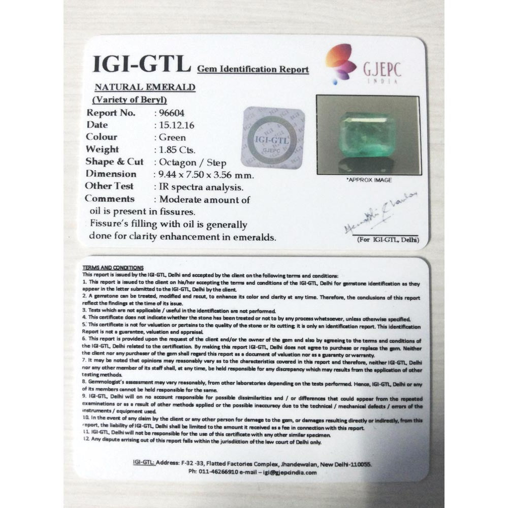 1.85/CT Natural Panna Stone with Govt. Lab Certificate (8991)
