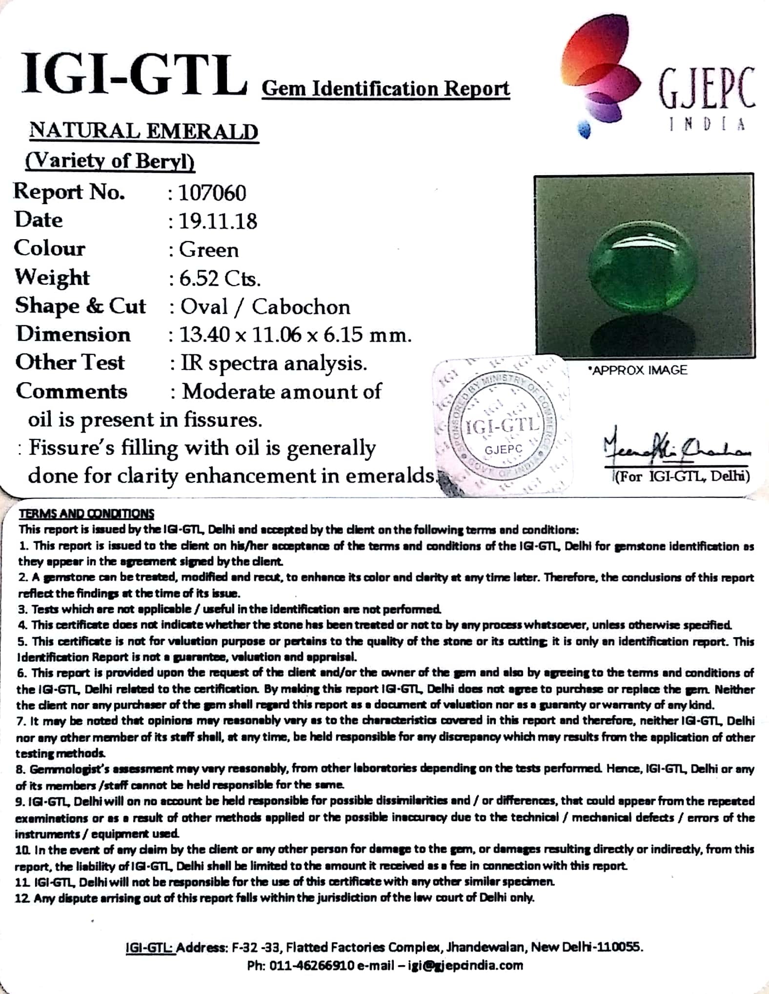5.82 Ratti Natural Panna Stone With Govt. Lab Certificate (3441)