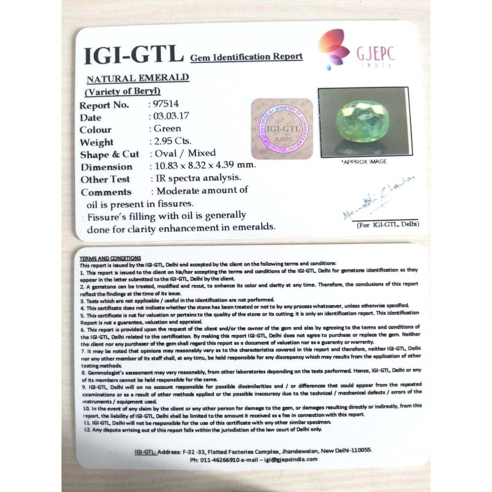 2.95/CT Natural Panna Stone with Govt. Lab Certificate (6771)
