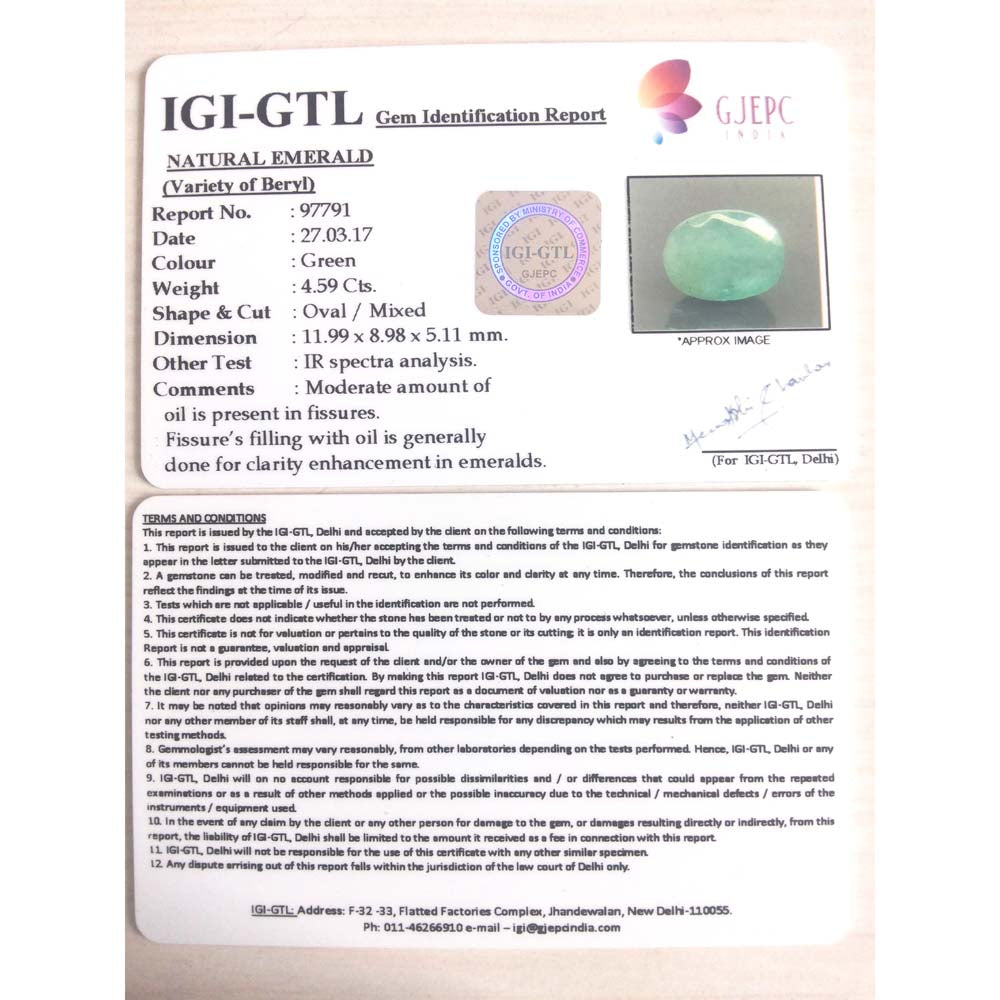 4.60/CT Natural Emerald Stone With Govt. Lab Certified (12210)