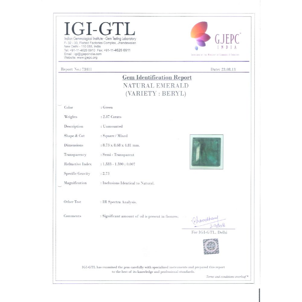 2.87/CT Natural Panna Stone with Govt. Lab Certificate (6771)