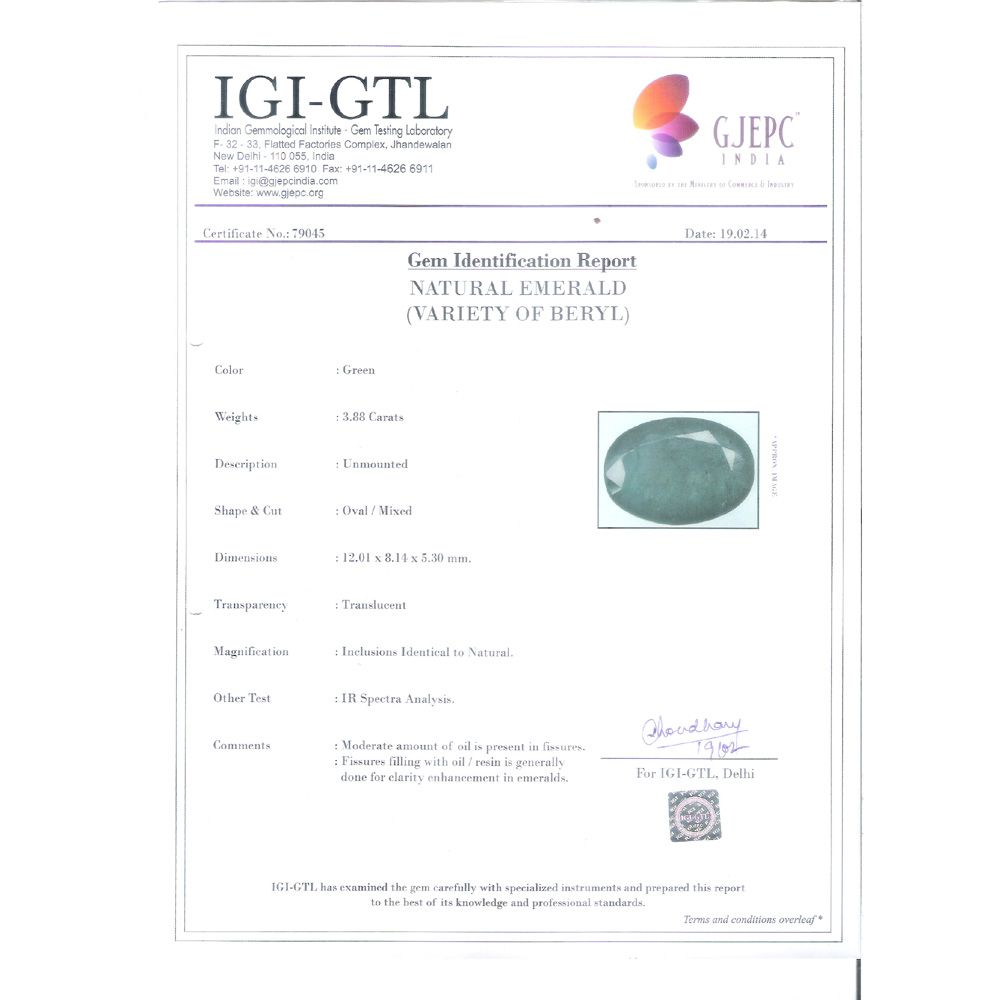 4.02/CT Natural Panna Stone with Govt. Lab Certificate-1665