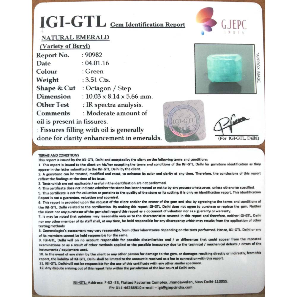 3.51/CT Natural Emerald Stone with Govt. Lab Certified-(4551)