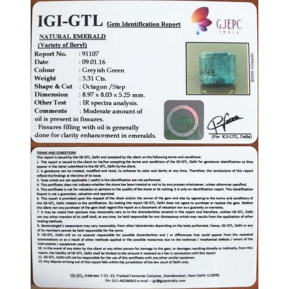3.08/CT Natural Panna Stone with Govt. Lab Certificate-4551