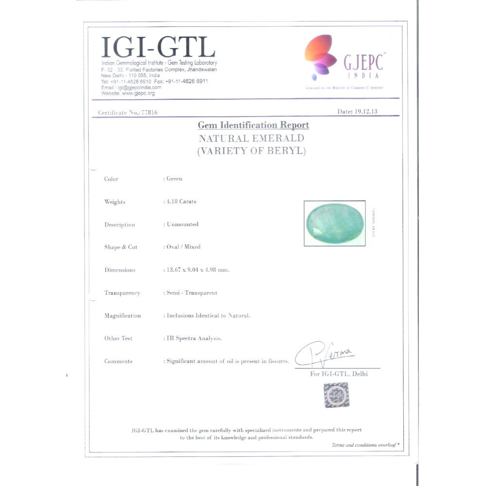 4.18/CT Natural Emerald Stone with Govt. Lab Certificate (12210)