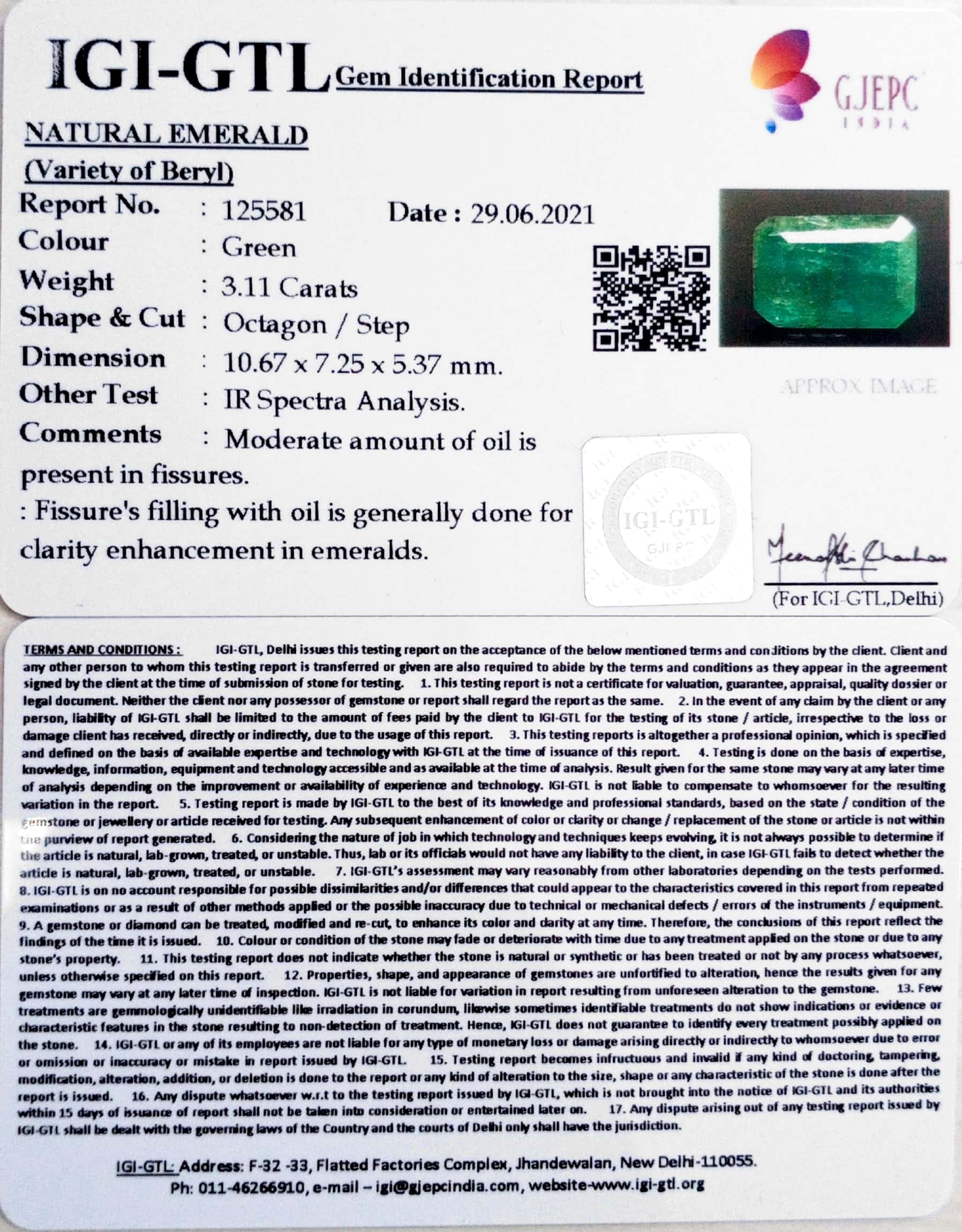 3.11/CT Natural Emerald Stone With Govt. Lab Certified (6771)