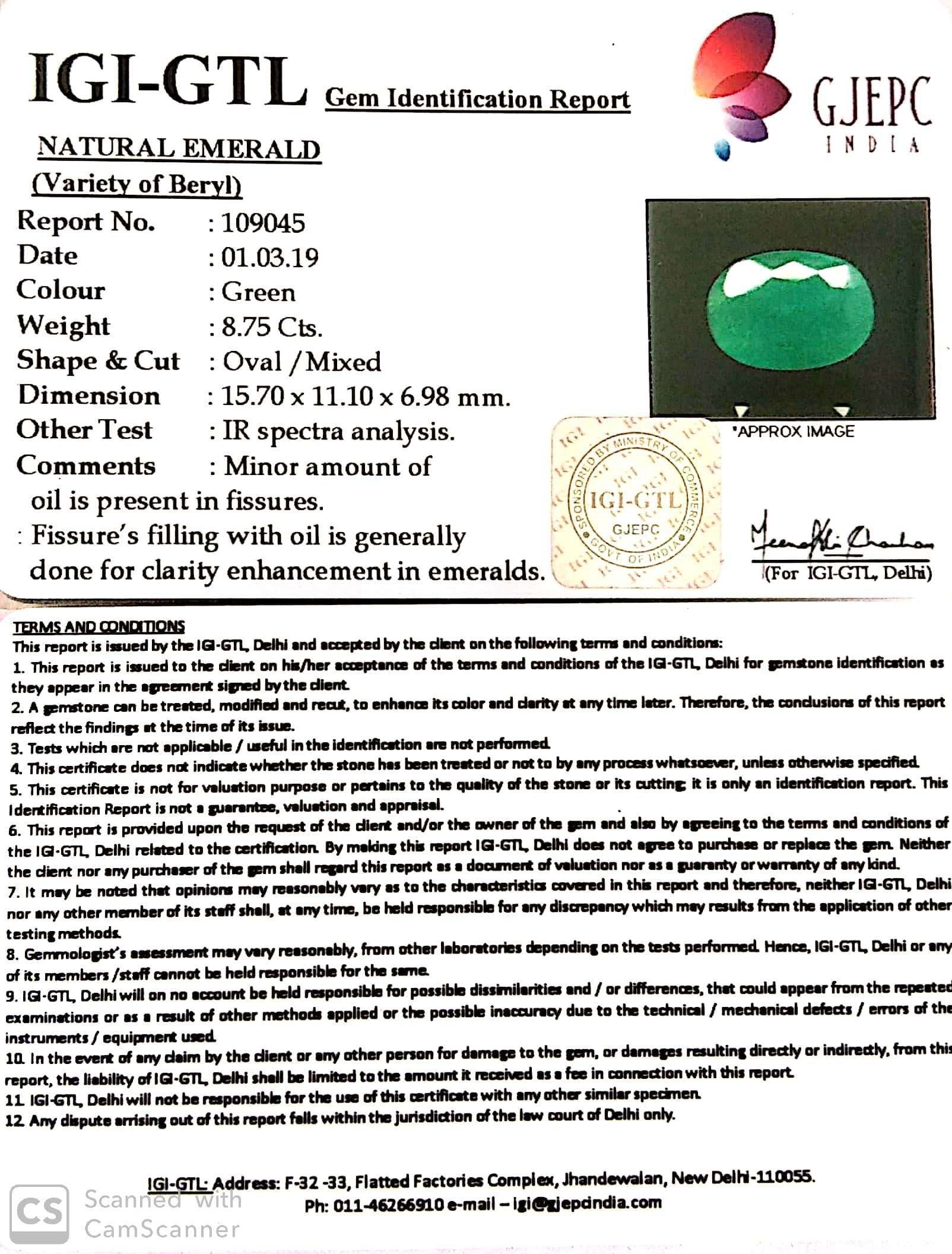 9.72 Ratti Natural Panna Stone With Govt. Lab Certificate (3441)