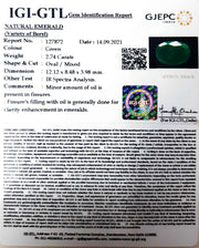 2.74/CT Natural Panna Stone with Govt. Lab Certified (3441)