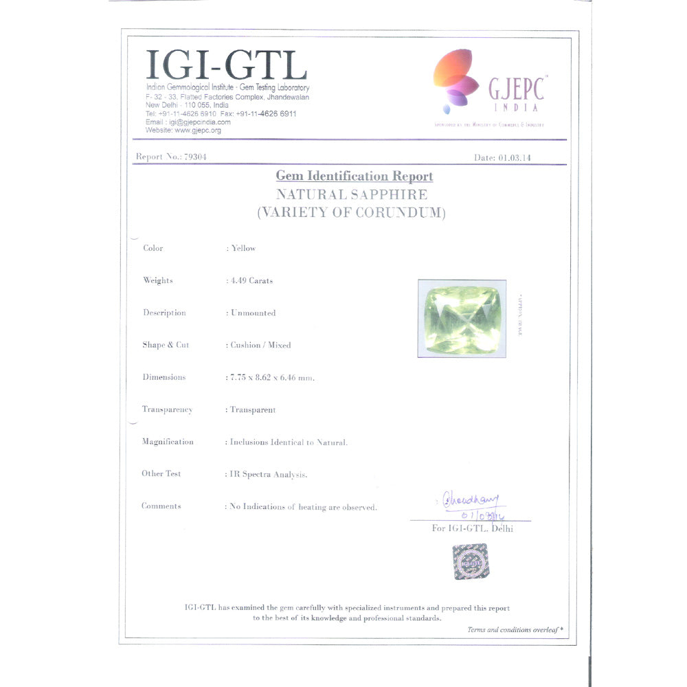 4.49/CT Natural Yellow Sapphire with Govt Lab Certificate-YELSA9V