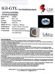 9.04/CT Natural White Sapphire with Govt Lab Certificate(6771)