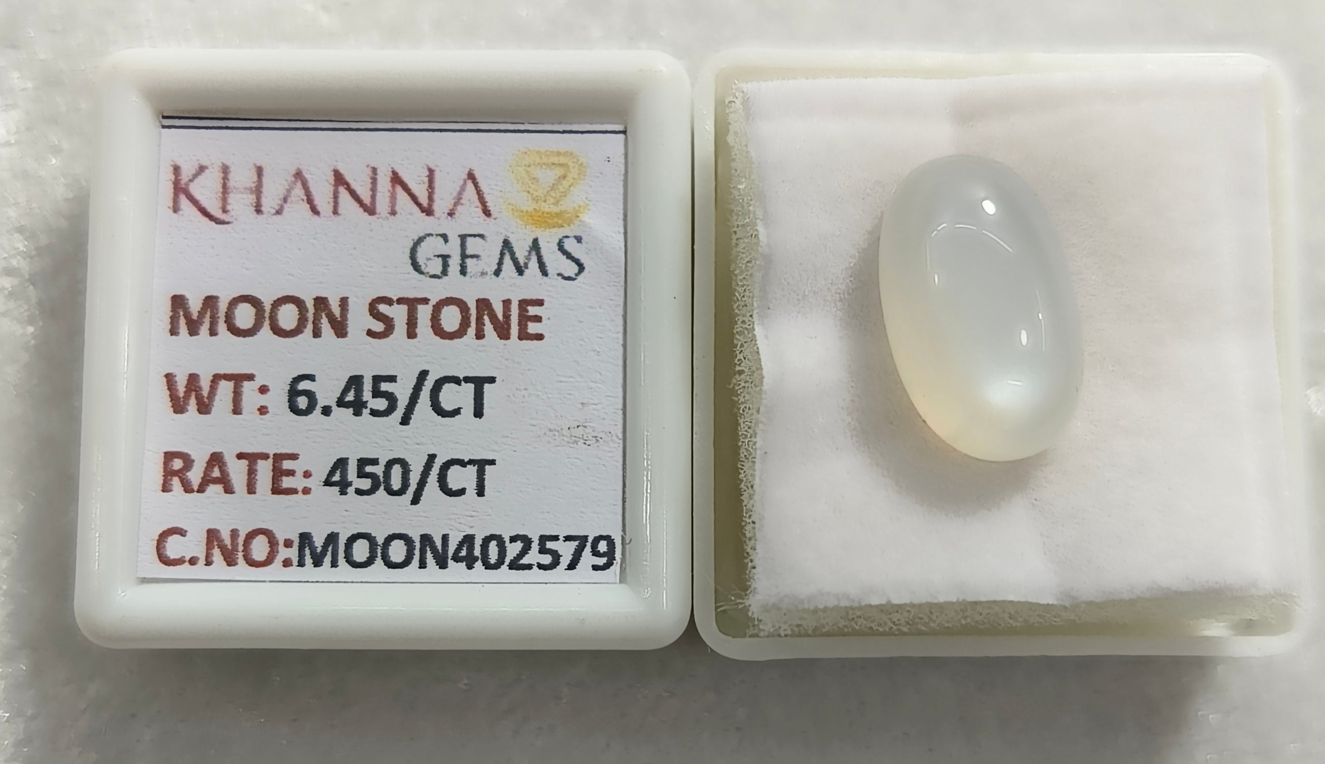 6.45/CT Moon Stone with Govt. Lab Certificate (450)
