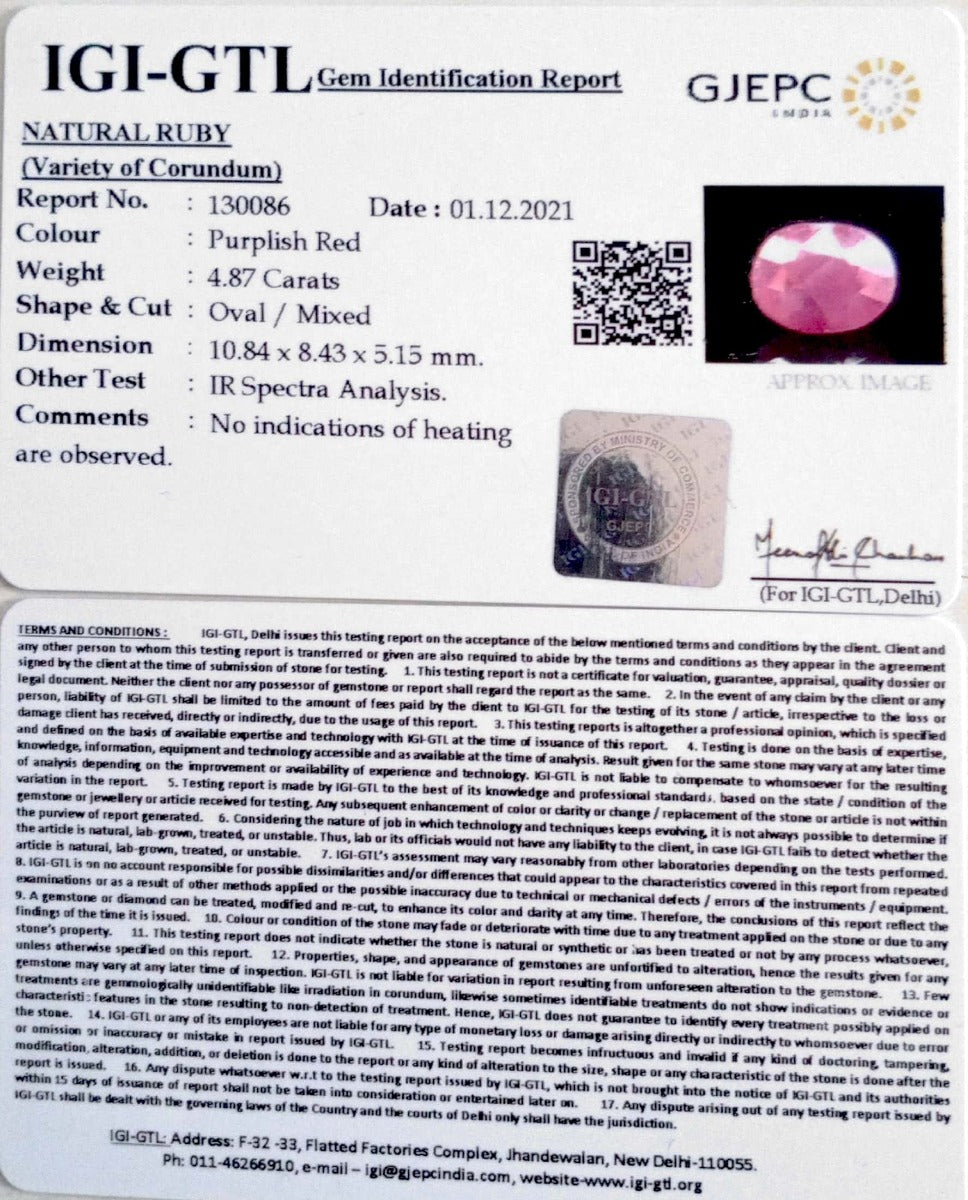 - Government-Recognised Gem Testing Lab - All rubies are certified and tested for authenticity and quality.