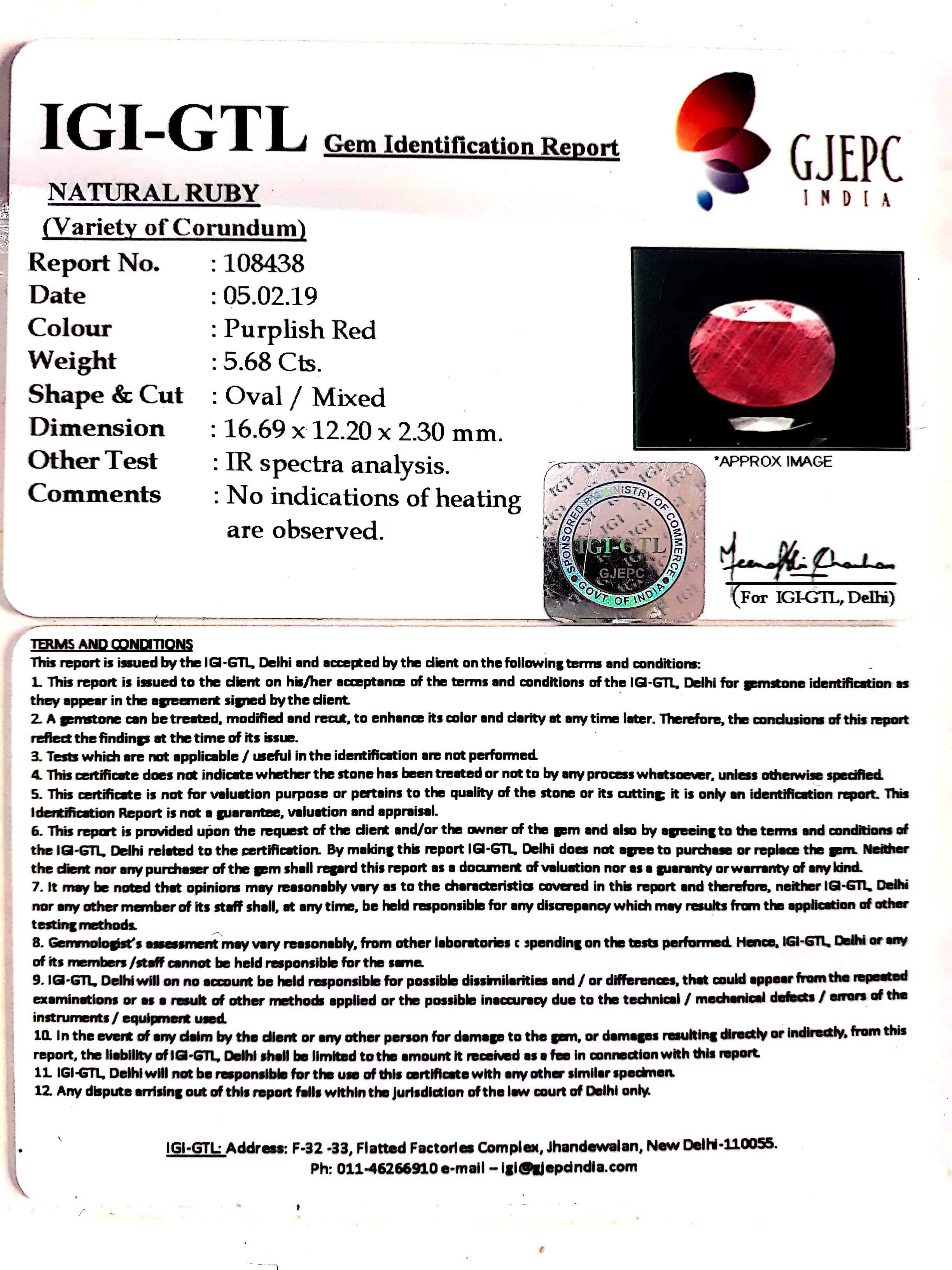 - Government-Recognised Gem Testing Lab - All rubies are certified and tested for authenticity and quality.