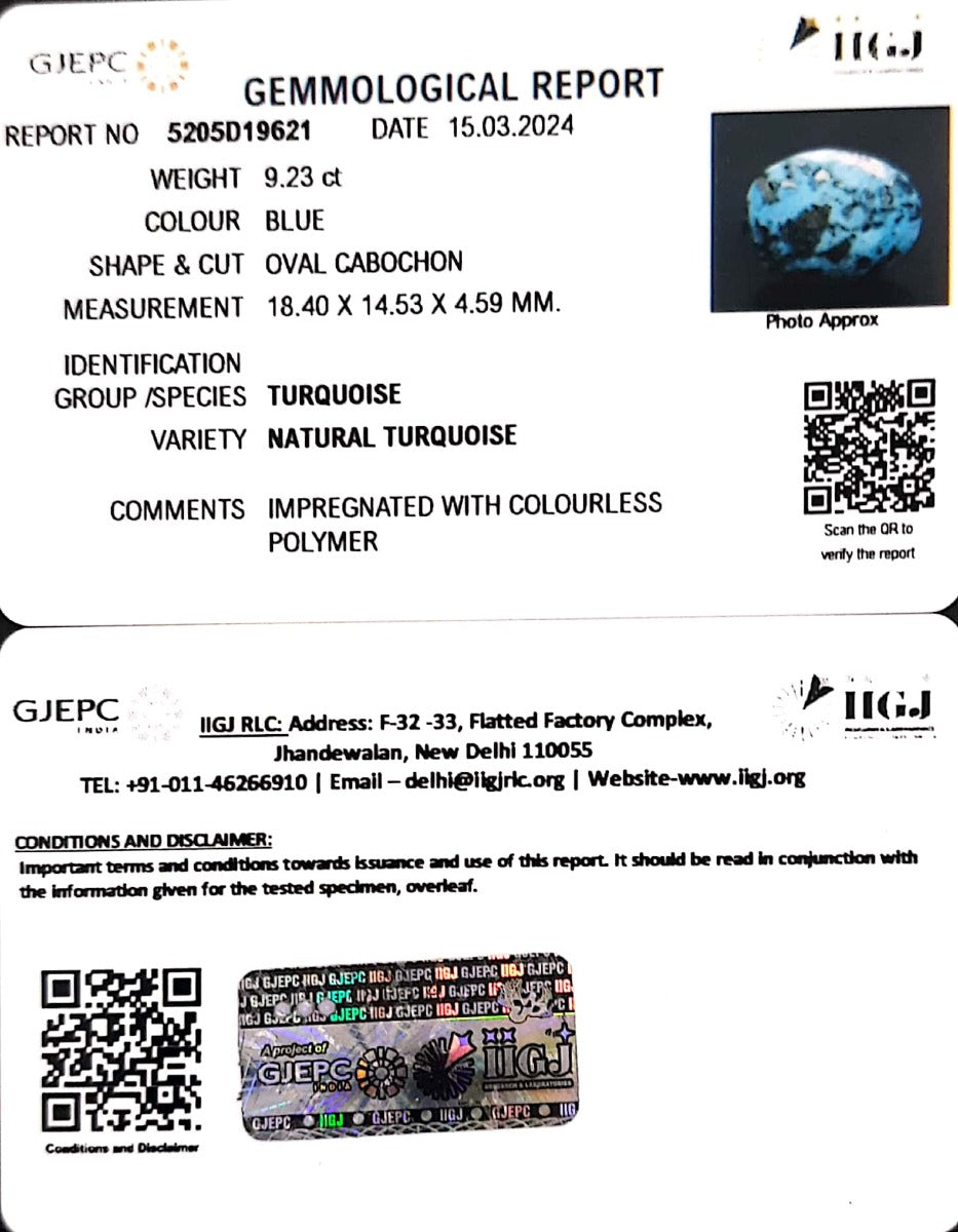 9.23/CT Natural Govt. Lab Certified Turquoise-1221