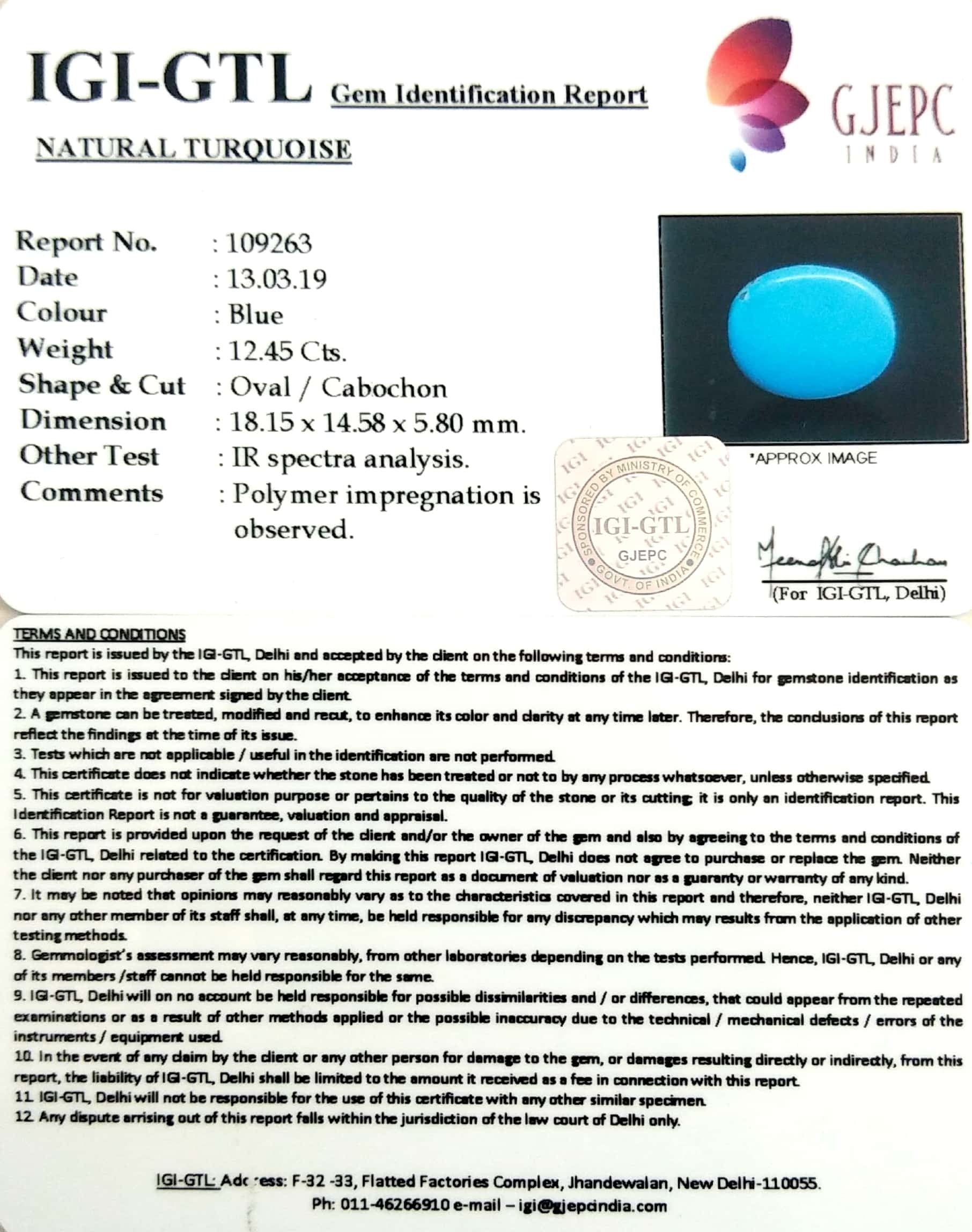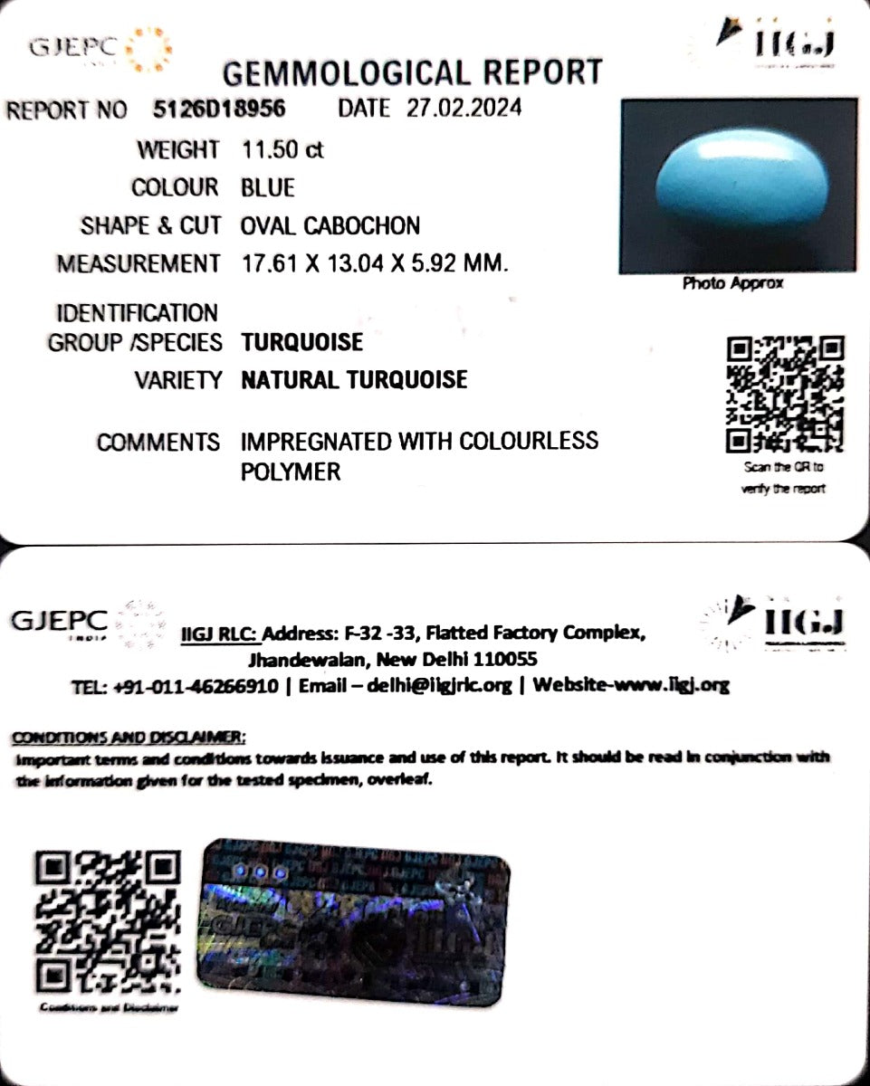11.57 Ratti turquoise With Govt. Lab Certificate-(610)