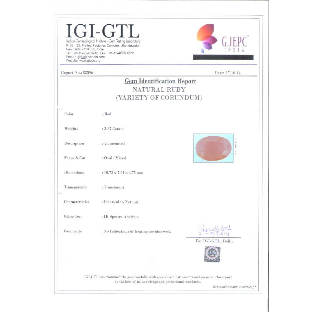 3.87/CT Natural Mozambique Ruby with Govt. Lab Certificate-23310