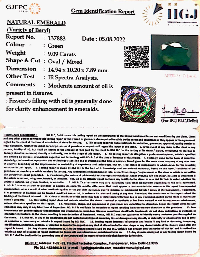 9.09 Carat Natural Panna Stone with Govt. Lab Certified-12210