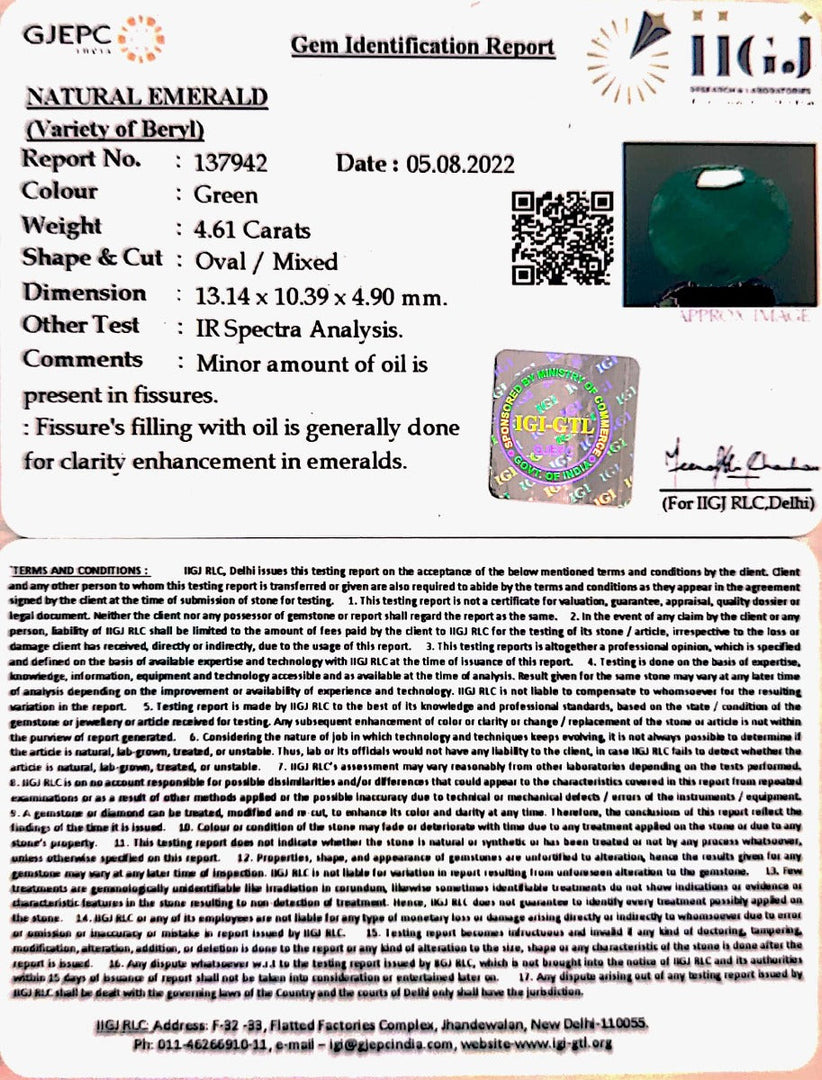 4.61 Carat Natural Panna Stone with Govt. Lab Certified-12210