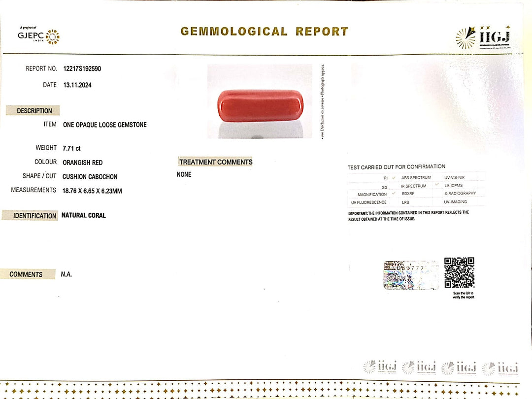 Allow our team of expert gemologists select a Natural Red Coral gemstone of Premium Quality from our offline inventory of gemstones. The selected gemstone shall be of relatively the same quality as those shown in the sample photographs, with weight within -0.2ct to +0.5ct range from your selection. You can alternatively decide to browse through our collection of catalogued gemstones with photos and videos to select a gemstone of your own choice by going to the Natural Red Coral Natural category page