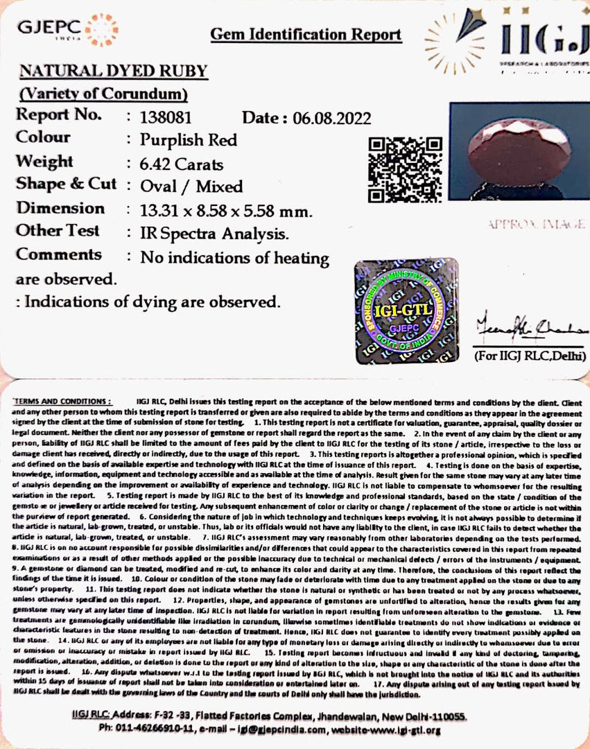 7.12 Ratti Natural Indian Ruby with Govt. Lab Certificate-(1221)