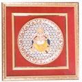 A work of artisans of Rajasthan this exclusive marble plate with beautiful Jali work has a picture of Lord Ganesha painted on it. The colors used are rich and includes the extensive use of 22 k Gold. (Framed in exclusive Italian frame is ready to be hanged from walls or placed on a pedestal)