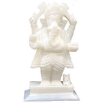 STANDING GANESHA (Code:AID 11) Material : Alwaster The son of Shivji, is considered to be the lord of wealth and intelligence. Ganeshji is worshipped in the beginning of ceremonies or worship to ward off hurdles. He has the head of an elephant denoting an enormously sharp memory, the nose of an elephant denoting his desire to know everything in detail before trying anything new. He has a special love for Laddoos. He shuns wastage, which is denoted by his control over a rodent whom he uses as his vehicle. Ganeshji should be kept essentially at the entrance so that evil spirits do not enter Dimension = 3.5 Inch