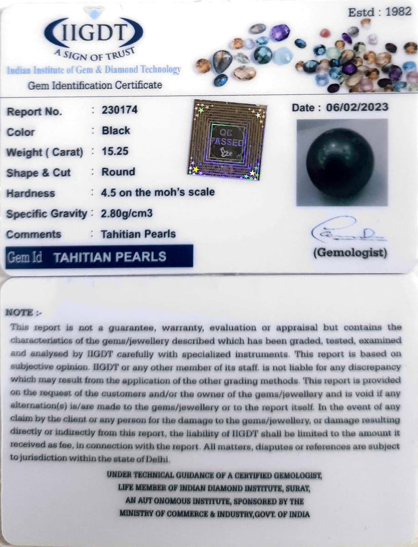 15.25/CT Natural Tahitian Pearl With Lab Certificate-(1332)
