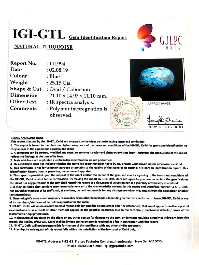 27.94 Ratti Irani Turquoise With Govt. Lab Certificate-(1221)