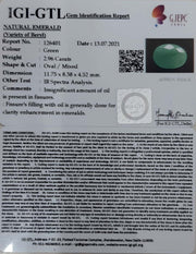 2.96/CT Natural Panna Stone with Govt. Lab Certificate (12210)