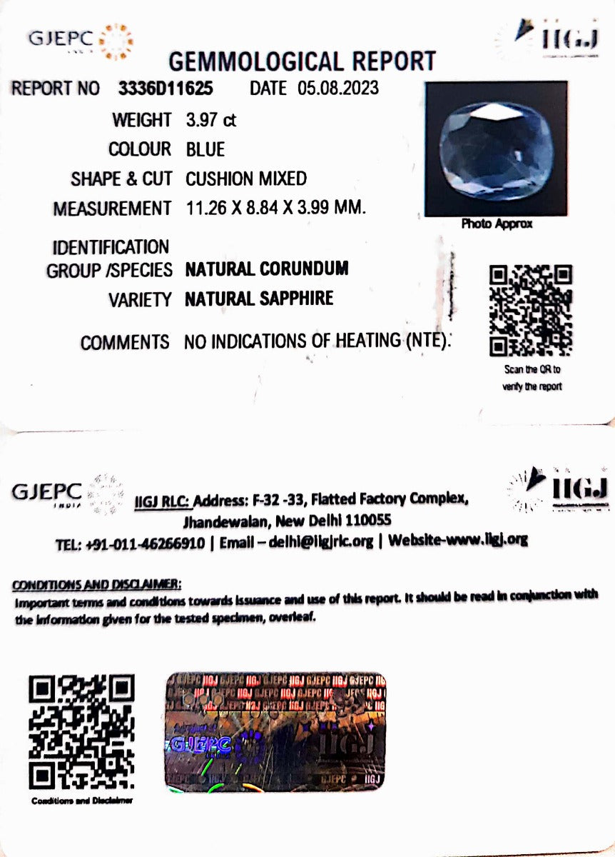 3.97/CT Natural Blue Sapphire with Govt Lab Certificate (23310)
