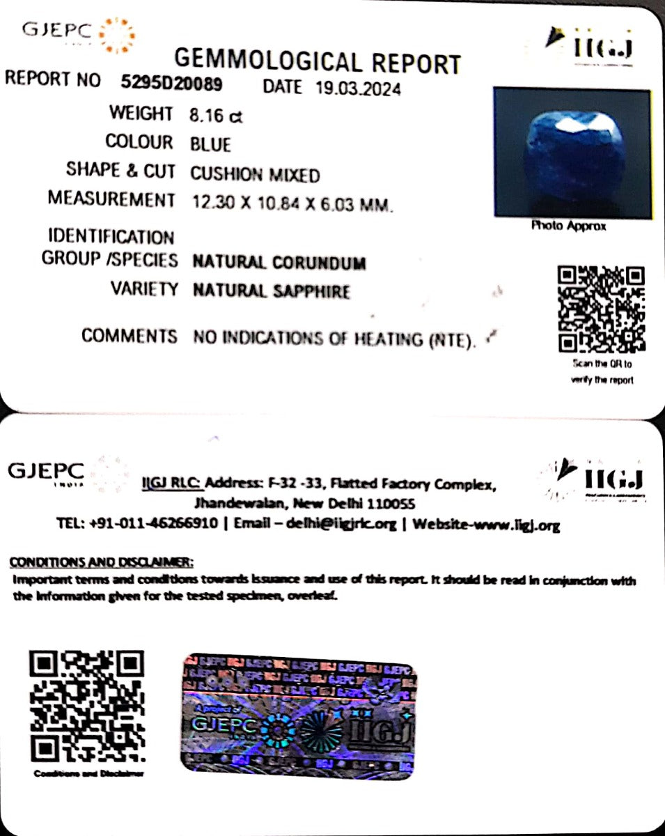 8.16/CT Natural Blue Sapphire with Govt Lab Certificate-6771
