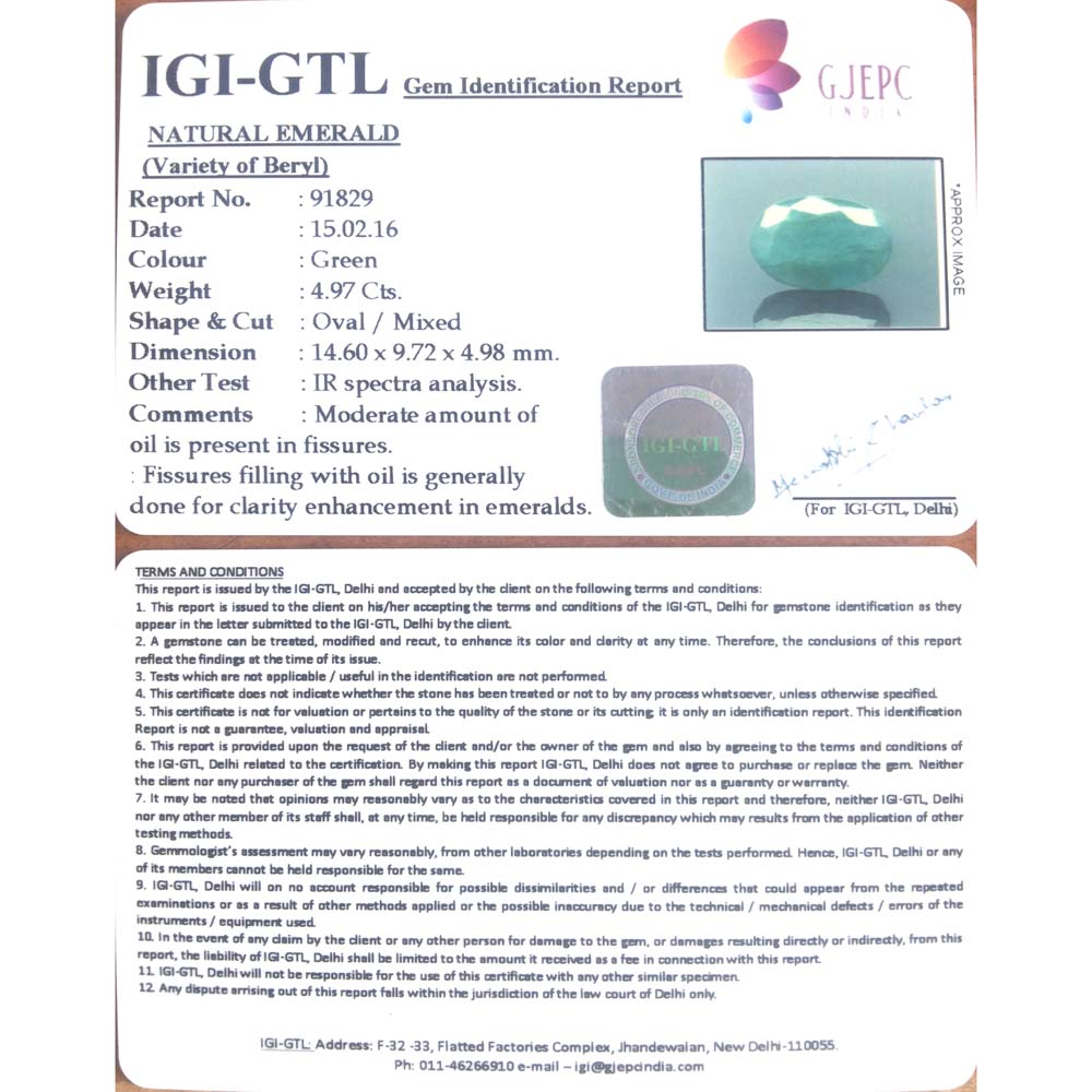 4.97/CT Natural Panna Stone with Govt. Lab Certificate (4551)
