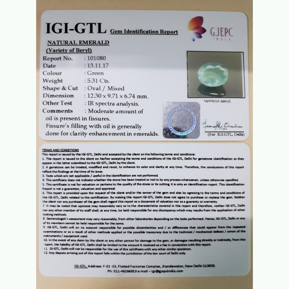 4.94/CT Natural Panna Stone with Govt. Lab Certificate-2331
