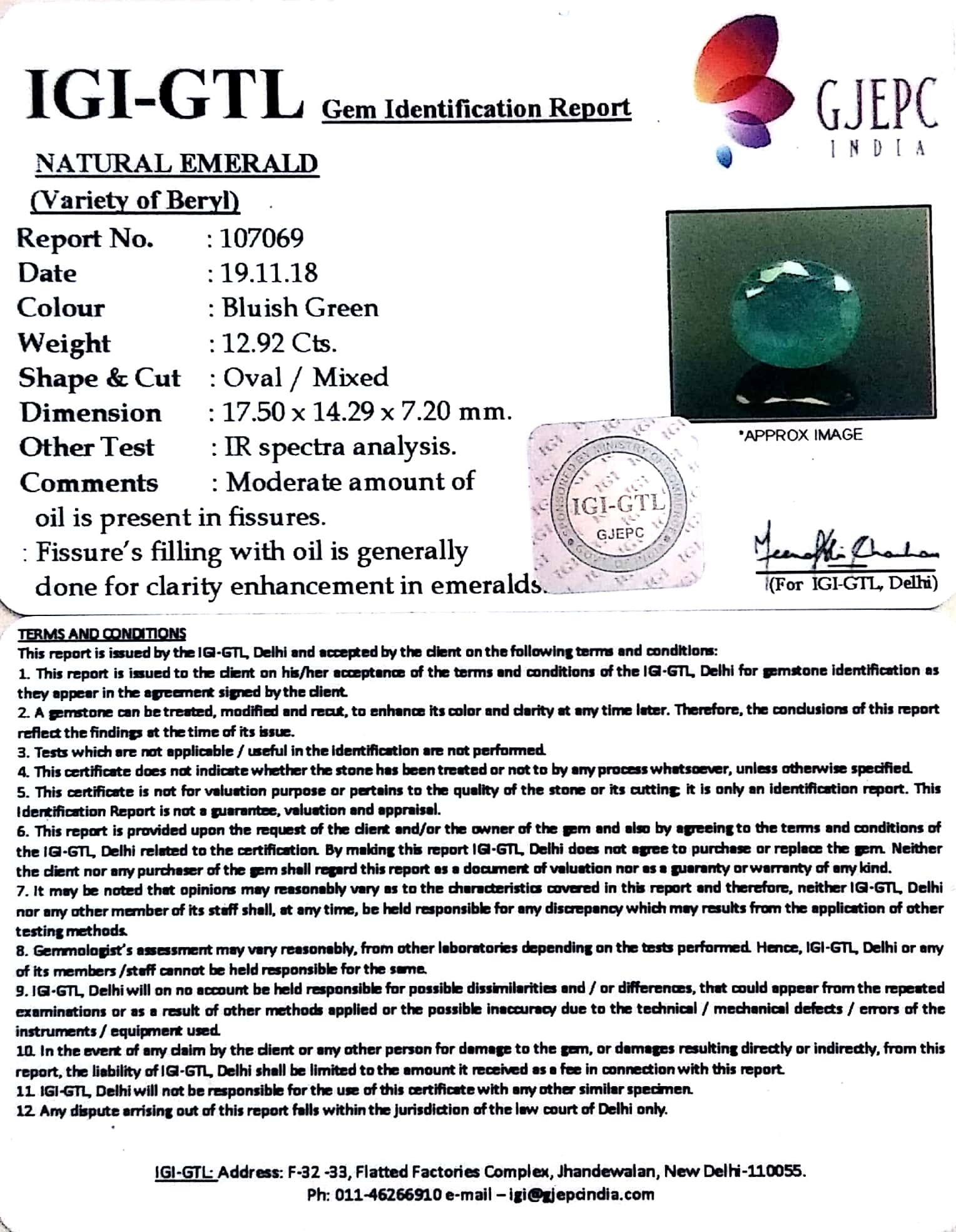 14.36 Ratti Natural ZAMBIAN Panna Stone With Govt. Lab Certificate (3441)