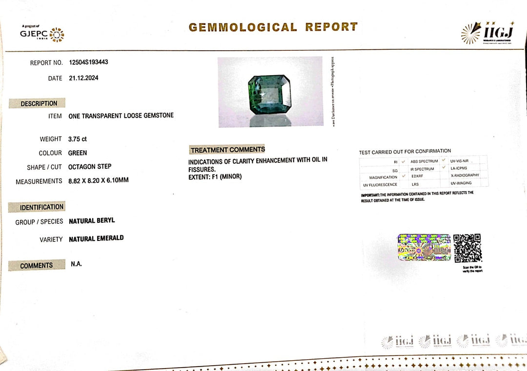3.75/CT Natural Panna Stone with Govt. Lab Certificate-23310
