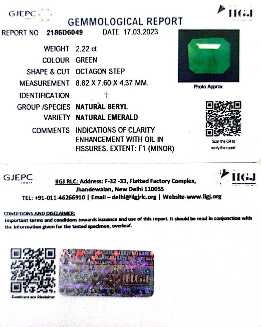 2.22/CT Natural Panna Stone with Govt. Lab Certificate -(3441)