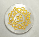 OM SYMBOL ENGRAVED SELENITE ROUND PLATE