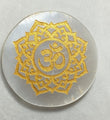 The Selenite Charging Round Plate OM 11 is a beautifully crafted spiritual yantra designed to cleanse and recharge your crystals, gemstones, and jewelry. Made from pure Selenite, this round plate features the sacred OM symbol, known for its ability to enhance spiritual energy, promote tranquility, and bring balance to your surroundings. It effectively removes negative energy and revitalizes your stones, creating a serene and uplifting atmosphere perfect for meditation, healing, and daily energy renewal. Its natural self-cleansing property requires minimal maintenance, making it a practical accessory for continuous spiritual support and well-being. Khanna Gems ensures each plate is authenticated and govt. lab certified, guaranteeing excellent quality and craftsmanship.