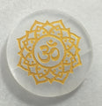 The Selenite Charging Round Plate OM 15 is a high-quality spiritual yantra designed to cleanse and recharge your crystals, gemstones, and jewelry. Made from genuine Selenite, this round plate features the sacred OM symbol, which amplifies spiritual energy and promotes peace and balance. Khanna Gems offers this plate as Govt Lab Certified, ensuring authenticity and superior craftsmanship. The selenite plate effectively removes negative vibrations, revitalizing your stones and creating a calm, positive atmosphere best for meditation, healing, and daily energy renewal. Its natural self-cleansing property means it requires no extra maintenance while continuously supporting your spiritual journey and well-being. Buy today in an affordable price!